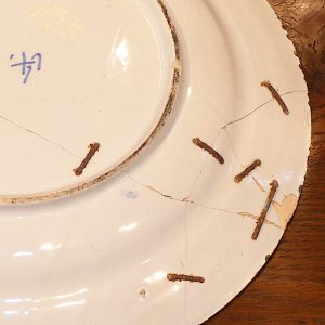 Haus noch Neues entdecken und dazulernen. Bei einer Fortbildung zur Porzellangeschichte beispielsweise wurde kurz über Reparaturtechniken gesprochen. Das, was uns bisher als dilettantischer Reparaturversuch erschien, erwies sich als eine besondere Technik, die nur spezialisierte Handwerker beherrschten. Bevor es Klebstoffe gab, fügten sie Scherben mit Metallklammern wieder zusammen. Dafür wurden auf der Rückseite kleine Löcher auf beiden Seiten des Bruchs gebohrt. Dort setzte man jeweils ein Ende einer erhitzten Klammer ein, die sich bei Abkühlen so zusammenzog, dass der Riss kaum sichtbar war.
