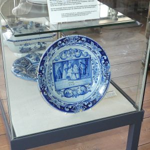 Von der Fortbildung zurück, haben wir in unserer Porzellanvitrine so umgeräumt, dass unser geklammerter Teller nun von Vorder- und Rückseite bewundert werden kann!