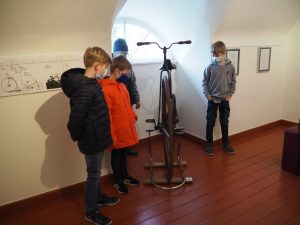 Seit letztem Samstag ist sie nun zu sehen: Die Sonderausstellung „Fahrräder der Geschichte und Zukunft“. Zu den ersten Besuchern zählten natürlich viele stolze Eltern der Klasse 3 der Theodor-Mommsen-Schule in Garding. Sie waren zusammen mit der Klassenlehrerin und den Kindern zu unserer feierlichen Einweihung gekommen. Übrigens stammen nicht nur die allermeisten Exponate von den Schülerinnen und Schülern, auch der Ausstellungstitel sowie das Plakatmotiv wurde demokratisch von der Klasse gewählt.