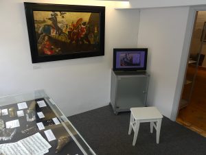 In der letzten Zeit mussten wir an einigen Stellen im Museum Platz für Neues schaffen. Deshalb sind bestimmte Exponate nun an anderer Stelle zu finden. So ist unser „Holländisches Bild“ aus dem 17. Jh. zusammen mit der erklärenden Bildschau von der Loo in den ersten Stock gewandert und nun im Silberkabinett zu finden. Der Raum ist zwar so klein, dass wir die bequemen aber ausladenden Stühle gegen Hocker austauschen mussten, dafür hat man hier jetzt aber wirklich Ruhe, sich alles gründlich anzusehen.