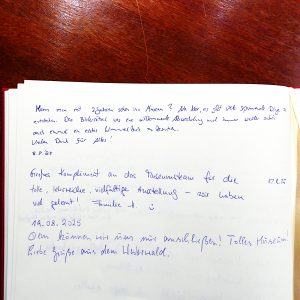 lobenden Kommentare in unserem Besucherbuch. Ab und an gibt es etwas Außergewöhnliches zu lesen. So der Eintrag vom 8. August: „Kann man mit 3 Jahren schon ins Museum? Na klar, es gibt viele spannende Dinge zu entdecken. Das Bilderrätsel war eine willkommene Abwechslung und immer wieder schön auch einmal ein echtes Wimmelbild zu besuchen…“ Das zu lesen hat uns ganz besonders gefreut! Und nun möchten wir allen anderen auch unsere Bilderrätsel empfehlen und viel Spaß damit wünschen. - 15. August 2025