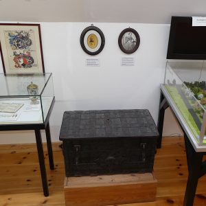 bitten wir sie durchs Museum zu gehen und aufzuschreiben, wo etwas verbessert oder behoben werden muss. Schon im dritten Jahr wurde der Schlüssel, der in der Vitrine des Pfenningmeisters aus der Ledertasche auf den Boden gefallen war, bemängelt. Leider ist nicht auf den ersten Blick ersichtlich, wie die Vitrine zu öffnen ist und deshalb lag der Schlüssel dort immer noch. Nun endlich haben wir mit Hilfe unseres Hausmeisters, dem passenden Werkzeug und vereinten Kräften, Teile der Vitrine auseinandergebaut und konnten so den Schlüssel aufheben. Der wird nun aber im Schlüsselkasten aufbewahrt, damit das nicht noch einmal passiert!